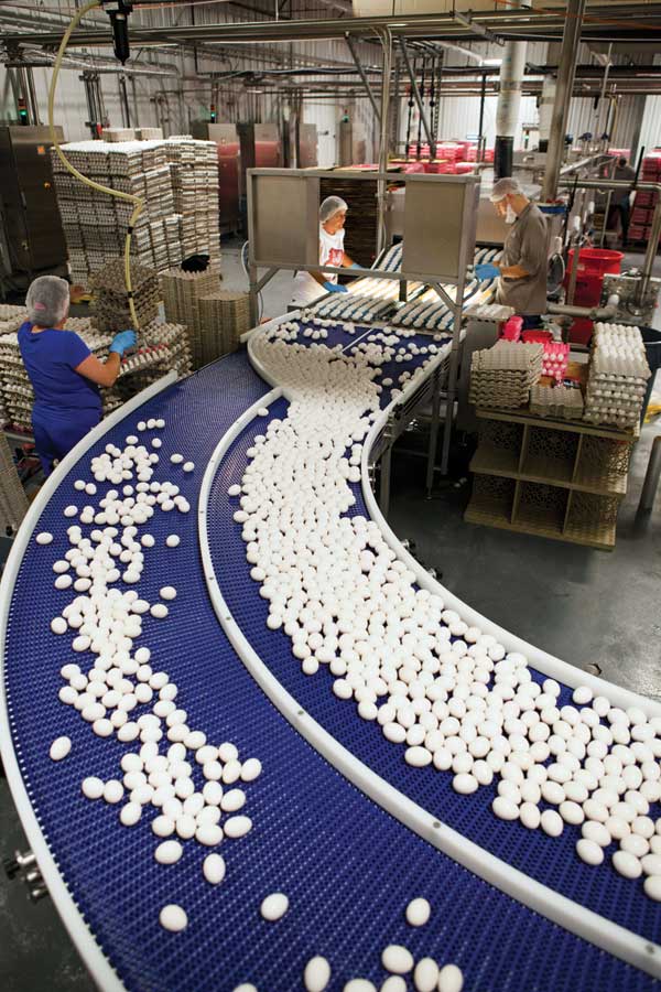 Each day of production, the Prime Foods plant just outside of Boonville, Ind., rolls out about 1,000,000 hard-cooked eggs. Most go to bulk customers, who then use them for egg salad or other products.