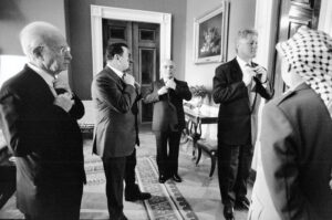 One of the most memorable images former White House photographer Barb Kinney ever captured wasn’t of a historic event, but a light, impromptu moment prior to one. It was in September 1995, when then-President Bill Clinton and four Middle East