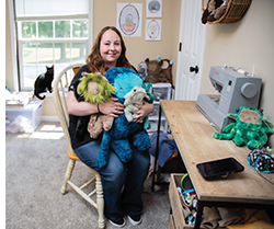 Dragons, dinosaurs, and other creatures at Button Jar Monsters aren’t fictional beasts: They’re cuddly companions brought to life by owner Jessica Johnson. The Olney, Illinois, native created Button Jar Monsters in 2017 from her Newburgh, Indiana, home. After crafting two