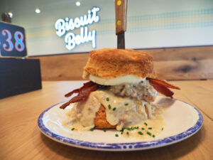 Breakfast food in Evansville just got an upgrade. The regional southern comfort chain Biscuit Belly had its grand opening event at 7:30 a.m. July 21. Entering the parking lot at 6:45 a.m., a line of hungry customers could be seen