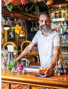 Behind the ornate bar at Mo’s House in Haynie’s Corner, senior bartender John Raleigh expertly shakes two cocktails. Pouring each into a chilled glass, he garnishes one with a meticulously cut lemon twist and the other with orange, all without