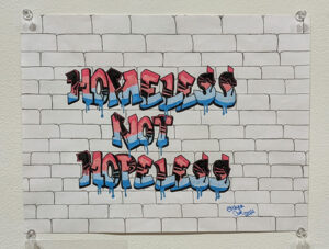 At the newest exhibit at the Arts Council of Southwestern Indiana, homeless does not mean hopeless. Depicted in colored pencil entries by Shania Curl, the tagline perfectly encapsulates “Artistry Unhoused: Enlightenment From the Streets,” which features art from 15 homeless