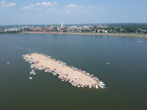 Under a July sun, boaters on the Ohio River began to circle near the Evansville riverfront waiting for the semi-annual, man-made sand bar to pop up. The small island is created by the U.S. Army Corps of Engineers dredging the