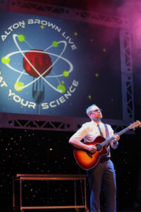 “A devilishly handsome raconteur who enjoys telling tales about food and its preparation,” Alton Brown quickly spouts when asked if he can describe himself in one sentence. The fact is, the guy is modest. In direct opposition to kitchen “unitaskers”
