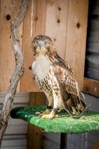 Lauren Norvell releases a red-shouldered hawk into the air and just as it flies a beeline overhead, she reels it in with the leash. The hawk came to Talon Trust, on the West Side of Evansville, five weeks prior with a broken humerus