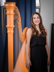 To describe Caroline Roberts as “musically inclined” is an understatement. Majoring in piano and minoring in harp at the University of Evansville, she sings and plays organ, keyboard, harpsichord, and a bit of guitar. She also gives instrument lessons at