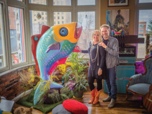 From the streets of Downtown Evansville, the second floor of the former Stratman’s Pharmacy in the 400 block of Main Street looks unassuming. However, the sight of a colorful fish sculpture in a corner window might make someone turn for