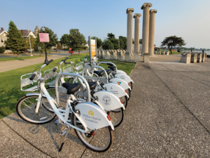 Relaunched in 2021 after a brief hiatus during the COVID-19 pandemic, the Upgrade Bike Share program is a cheap and healthy way to traverse the River City for business or pleasure. Painted white and decorated with logos from program sponsors