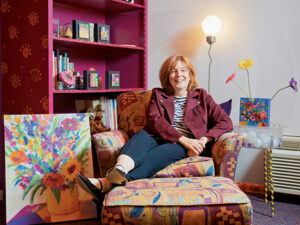 Step into Amy Elliott Ubelhor’s studio, and you will be transported into a world of color. Growing up, her two kids Eli and Emma said it was like living inside a box of crayons. Every surface possible in her studio