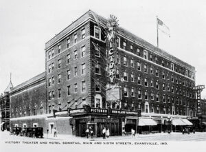It was a coincidence that Scott Schoenike found an old postcard of the Victory Theatre on eBay. The original postcard showed him exactly what he had been searching for — the look of the former vertical marquee attached on the