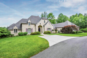 The French country, one-level home at 1402 Stonebriar Drive provides a spectacular attention to detail and craftmanship. The seven-acre property built by Randy Elpers in 2002 is surrounded by beautiful rolling grounds overlooking a five-acre lake. The private front yard