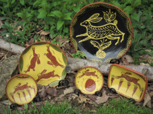 An annual event for the past 12 years, Christmas at the Cabin brings together pottery and fraktur by Tom Wintczak; original paintings, prints, and cards by Kazhia Kolb; and wood carvings by Richard Hitch in the cozy setting of an