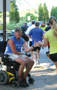 Who is he? Kenny Page Jr. Where is he? Alvord Boulevard Why is he there? To help others finish a half-marathon, even though he can’t. At the bottom of the Alvord Boulevard overpass at the Lloyd Expressway, a red-haired man