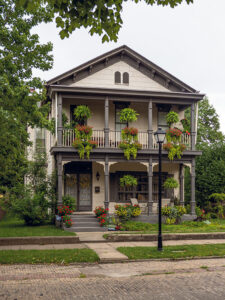 Evansville’s historic Southeast First Street offers up views of some of the most unique residential architecture found in the city. “Walking down the brick street in the Downtown Historic Riverside District, a person can visualize living back in time,” says