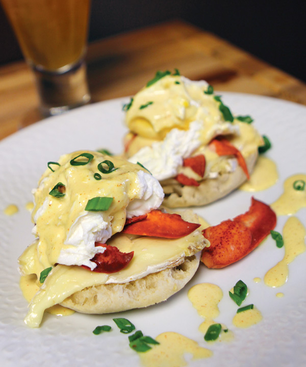 Place warm lobster claw meat and thinly sliced Brie on toasted English muffin halves. Softly nest the eggs on top and serve with enough hollandaise to cover.