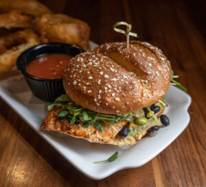 Why It Stands Out: The health benefits of salmon are impressive, especially considering the low-fat content and the presence of omega-3 fatty acids, which are shown to provide benefits for the heart and brain. While Baja-style cooking typically is applied to fish tacos, BRU Burger Bar adds a twist with queso fresco, guacamole, black bean aioli, black bean edamame salsa, and pea shoots with an oat bun.
