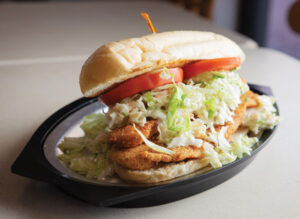 Why It Stands Out: In Catholic-heavy Southwest Indiana, fish is a popular choice on Fridays during Lent. But for many area diners, any day is a good day for a deep-fried fish sandwich. Major Munch, a small Downtown Evansville spot that does brisk lunch business, serves up not only a standard catfish sandwich, but a catfish and shrimp po’ boy with provolone cheese, slaw, lettuce, tomatoes, and the diner’s special sauce.