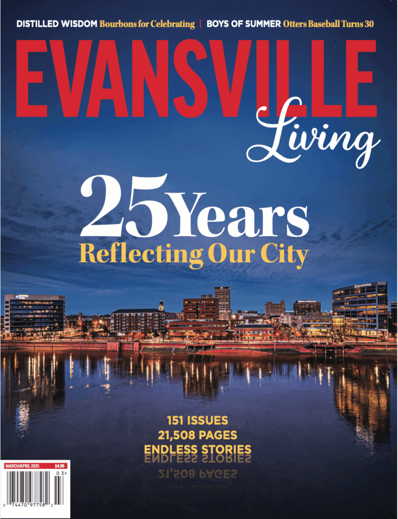 “Today the staff of Tucker Publishing Group, Inc., does just what we aimed to do when we published the first issue of Evansville Living in March 2000,” says Publisher & Editor Kristen K. Tucker. “That is to tell the real, authentic stories of Evansville — the people, places, and things that make the River City unique and special to those who live, work, or visit here. It’s been a privilege to be trusted with these stories for a quarter of a century. Even as we are celebrating this milestone, our staff looks to the future, focusing on new and updated stories to tell, now in a refreshed, redesigned Evansville Living.”