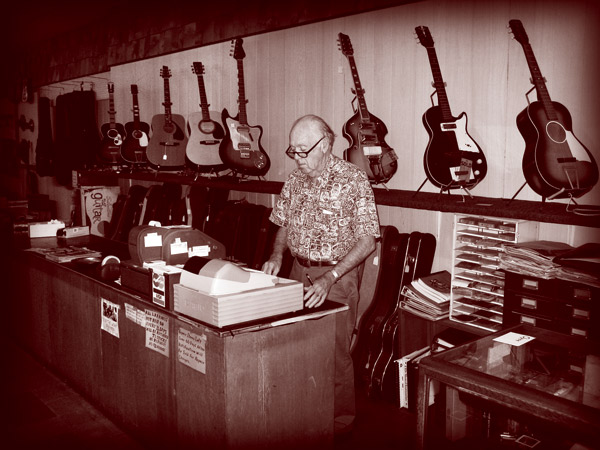 When I asked Dallas about the guitar, he looked up from his glasses and pointed out the window. “Their factory was right across the street,” he said gesturing to the small park that now sits next to the former Old National Bank building. He said that a fire gutted the building in the early 1900s.