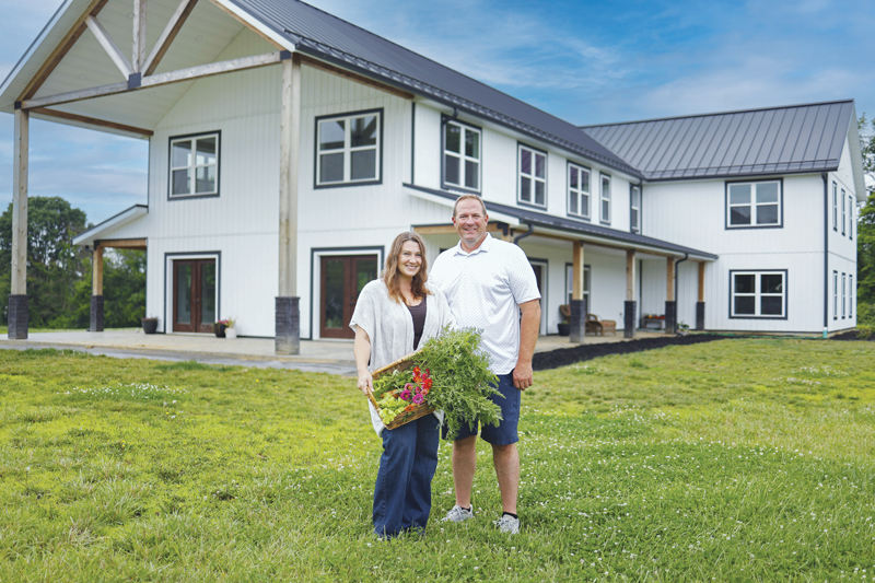 The Davises’ farm is home to five rescue dogs, one rescue cat, a dozen-plus chickens, three donkeys, and four goats, with two more goats scheduled to join the farm this summer. An addition this spring was a calf with a soft brown coat, a sweet disposition, and only one eye — “she was born that way,” Nikki says. Juney was an early Mother’s Day present from a friend’s farm and has been warmly welcomed by the Davises’ other animals. “She will grow to be 1,000 pounds, and she will never see a slaughterhouse,” Bob says. “She’ll be spoiled for the rest of her life.”
