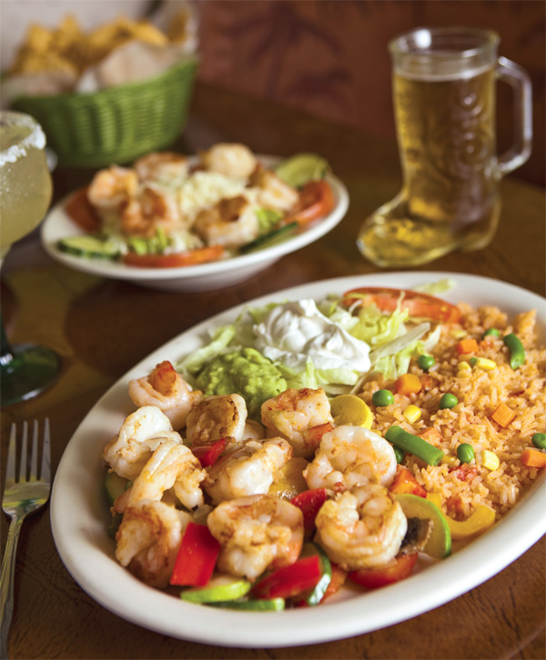 For her entree, my dining companion chose a traditional Mexican dish, carne asada. The slender pieces of grilled steak arrived with delicately charred edges. Noting the robust selection of seafood dishes, I ordered shrimp fajitas. The sizable shrimp, sautéed with a hefty helping of vegetables, had no trace of the tough, rubbery texture that indicates overcooked shrimp. Soft tortillas and a hearty serving of Acapulco’s rice and beans, made fresh daily, accompanied the dish.