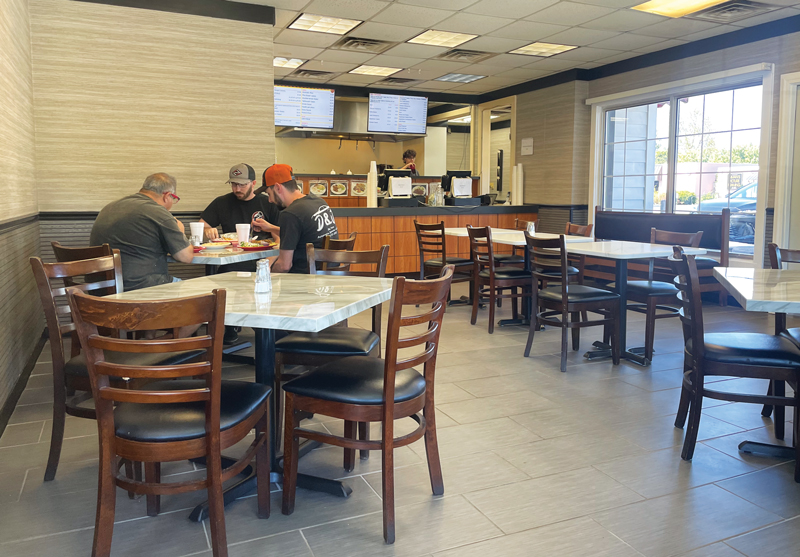 The Mannas redecorated to give their business a casual, yet elegant flair. Sleek black-and-dark-wood chairs surround restaurant-style tables shining with a gray-white marble-like finish. Crisp, wood-textured tile flooring pairs well with the black-trimmed chair rail. Menu classics remain unchanged, but TV screens now filter through photos of tabbouleh salad, lamb shank, and beef kafta kabobs as customers order, which “makes it easier for people to know what the food looks like,” Manna says. With help from Random Tasks LLC, the space was refreshed during July.