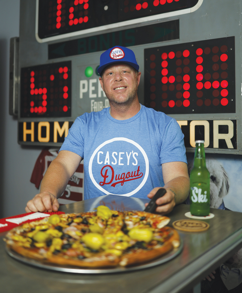 Mattingly’s favorite pizza, The Hitman, is one of Casey’s Dugout’s bigger sellers and is topped with mushrooms, sausage, and extra cheese. Two other specialties are dear to Keown’s heart: His son Graham is the namesake of the “Graham” Slam loaded with sausage, pepperoni, beef, ham, bacon, onion, green pepper, black olives, mushrooms, and pepperoncini. Harper’s Hot Honey Hawaiian, a sweet nod at his daughter, blends ham, pineapple, and brown sugar, with a hot honey drizzle. Actually, there’s a second Mattingly-inspired pie: The Donnie MEATball offers house-made meat- balls, ricotta, green pepper, onion, and mozzarella. Mary’s Little Lamb and the MARGO-Rita are other popular choices.