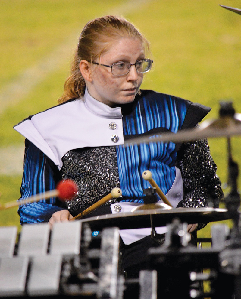 Penny Kaluza sparked the idea when the children’s minister at Newburgh, Indiana’s First Christian Church encouraged Abby to join band. Abby chose percussion and eventually the front ensemble of the Castle Marching Knights. She plays cymbals and a drum, instruments that are better suited to her limited mobility. The Castle High School junior has continued to thrive under the tutelage of Nikki Miller, her percussion director since Castle South Middle School.