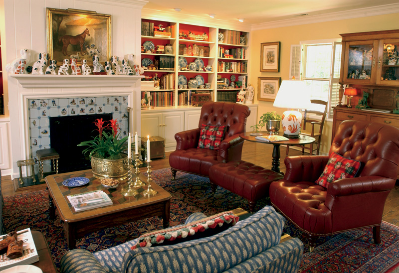 One item both Gaunt and Ruthenburg routinely agree on is their mutual love for English Staffordshire, a type of art deco pottery, the most popular of which are statues of dogs. Gaunt houses her collection in the family room, which was once the carport of the home (explaining the single-step down from the kitchen). The back wall of the room is a sprawling bookshelf filled with the Stafford-shire, Canton-ware Chinese porcelain and a continuance of mementos from her travels, including two horse-and-rider statues from the Ming Dynasty she purchased for her sons while with them in Hong Kong.[pagebreak]