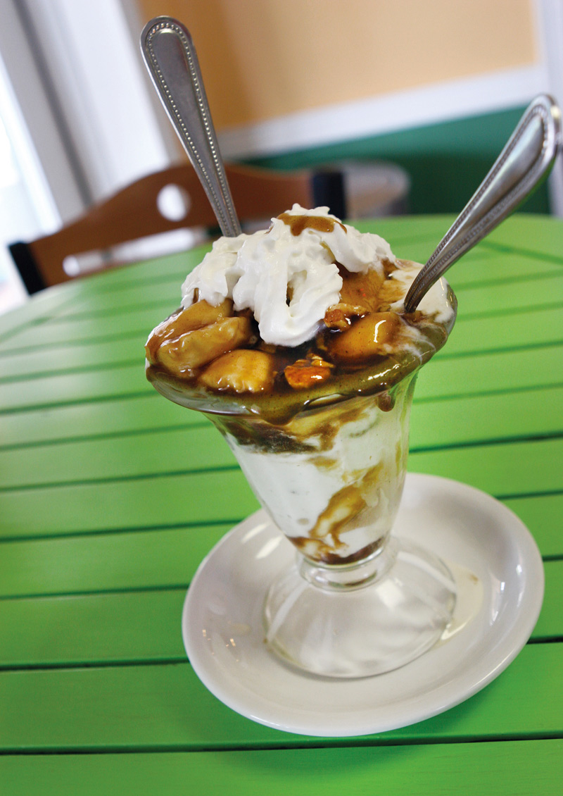 Grab plenty of napkins and settle down with a spoon, because the Bananas Foster sundae at Ben & Penny’s is set to demand your attention. This popular dessert has vanilla ice cream, large banana chunks, lightly toasted walnuts, homemade whipped cream, and homemade Bananas Foster sauce with a very light touch of rum. It’s also delicious and is guaranteed to make you focus entirely on the task at hand. Once your spoon is empty, though, you’ll likely want to take a look around at this adorable ice cream and espresso bar across the street from the banks of the Ohio River in Newburgh, Ind.