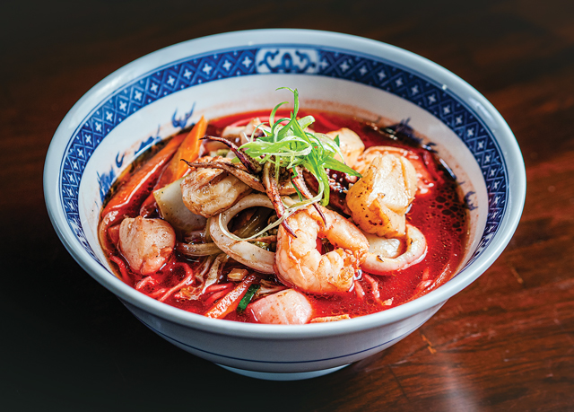 “What really stands out about this ramen dish is the quality of seafood and mixed vegetables — it is so fresh and cooked to perfection. It has a delicious savory taste, and the flavor is incredibly well-balanced with a complex spice blend, such as pepper flakes, chili powder, oyster sauce, soy sauce, paprika, sake, mirin, and dashi broth.”