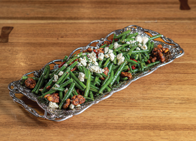 “This is a wonderful side. The fresh crisp French green beans, with the flavor and texture of the sun-dried tomatoes and the spiced candied walnuts, plus hints of crumbled bleu cheese, pair with tenderloin of beef, pork, chicken, or seafood. It is a very festive dish because of the appearance and texture.”