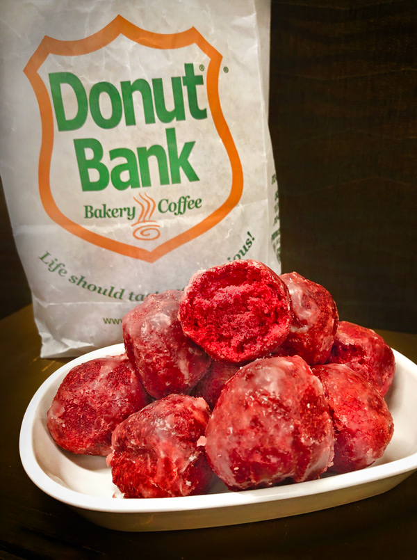“These donut balls are quite the sweet treat,” says Staff Writer Riley Guerzini. “If you enjoy red velvet cake, then you’ll love this latest Donut Bank special.”