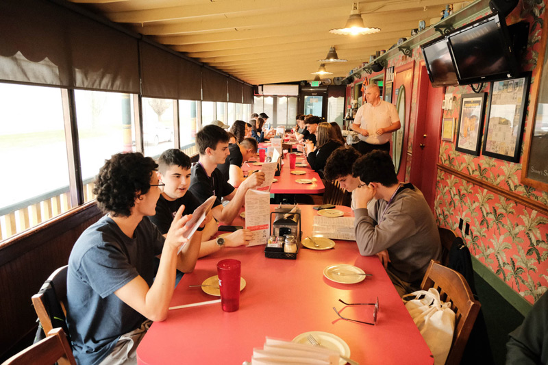 During their 10 days in Evansville, students stayed with 18 host families. Lauren Piekos, husband Chris, and son Elliott welcomed two students. (Evansville Living readers may remember Elliott, now 15 and a ninth-grader at Signature School, as a 9-year-old state-ranked chess player featured in the March/April 2020 cover story, “Cool Kids.”)