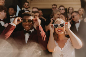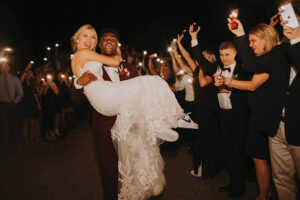 “We decided to do a private dance halfway through the reception,” she says. “All of our guests went outside to prep for the flashlight exit. Jadrien and I stayed alone inside and danced to the song I walked down the aisle to — a break in the chaos for just the two of us to have a moment together and take it all in. It was the most special and unique part of our day.”