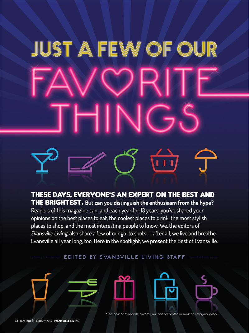 These days, everyone’s an expert on the best and the brightest. But can you distinguish the enthusiasm from the hype? Readers of this magazine can, and each year for 13 years, you’ve shared your opinions on the best places to eat, the coolest places to drink, the most stylish places to shop, and the most interesting people to know. We, the editors of Evansville Living, also share a few of our go-to spots — after all, we live and breathe Evansville all year long, too. Here in the spotlight, we present the Best of Evansville. (*Note: The Best of Evansville awards are not presented in rank or category order.)