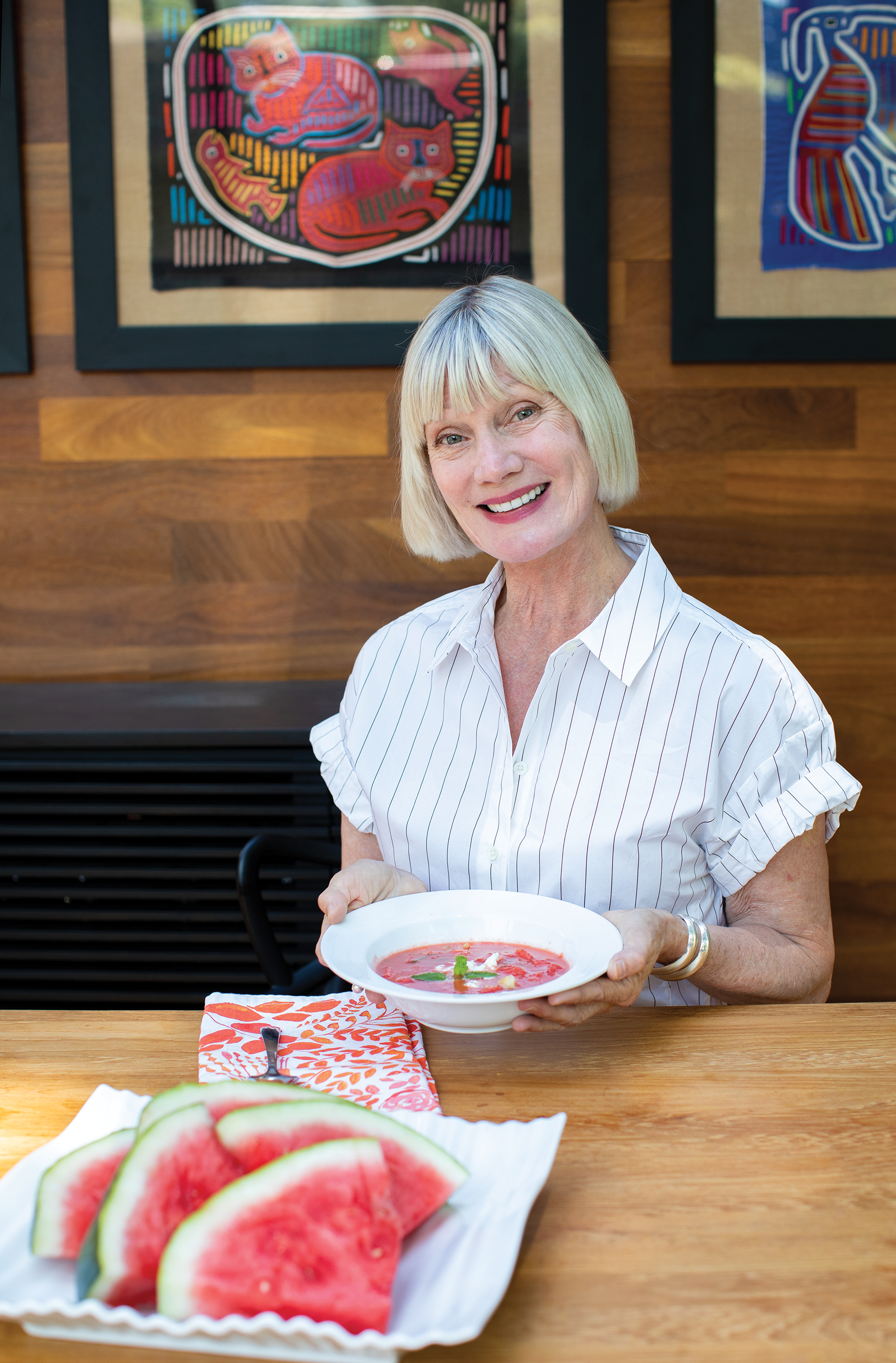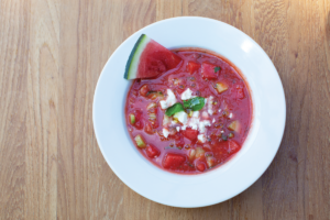 During the summer heat, Sande Thomas stays cool with a fresh twist on gazpacho. A cold soup hailing from Spain, gazpacho traditionally has a tomato base and blended vegetables, but Thomas swaps in watermelon for a sweet spin.