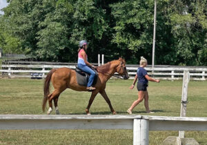 “That first lesson is me getting to know them, them getting to know the horse, and seeing how much they already know, and then letting them know what to expect from future lessons,” she says.