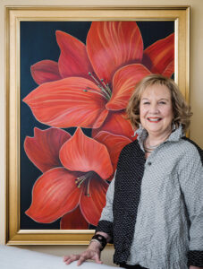 “I thought he pulled it out of the air. I was trying to be gracious about my gift, but I had no idea where this was going,” she says. “I resisted because of lack of experience, but Bill said, ‘I see an artist in you. From the way you dress to how you decorate, you’re an artistic person.’”