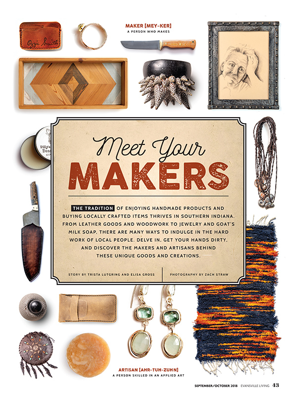 The tradition of enjoying handmade products and buying locally crafted items thrives in southern indiana. From leather goods and woodwork to jewelry and goat’s milk soap, there are many ways to indulge in the hard work of local people. Delve in, get your hands dirty, and discover the makers and artisans behind these unique goods and creations.