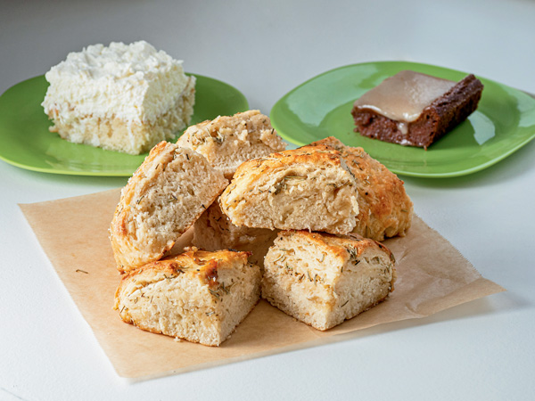 Cleo’s is known locally for their cakes, bread puddings, and honey rosemary buttermilk biscuits, which Kellams’ son even uses as the bread for their breakfast sandwiches.