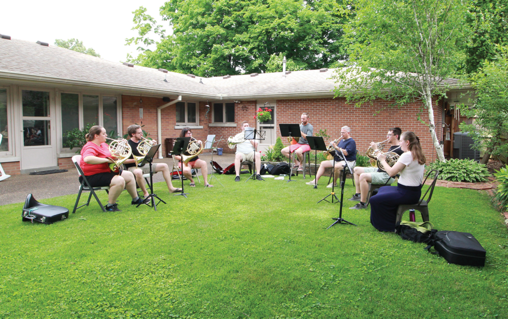 “I have a large back yard with a huge oak tree to shade it, and so it works out pretty well,” says Art Adye, a founding member of the group and principal hornist in the Evansville Symphonic Band. “We sometimes draw a crowd.”