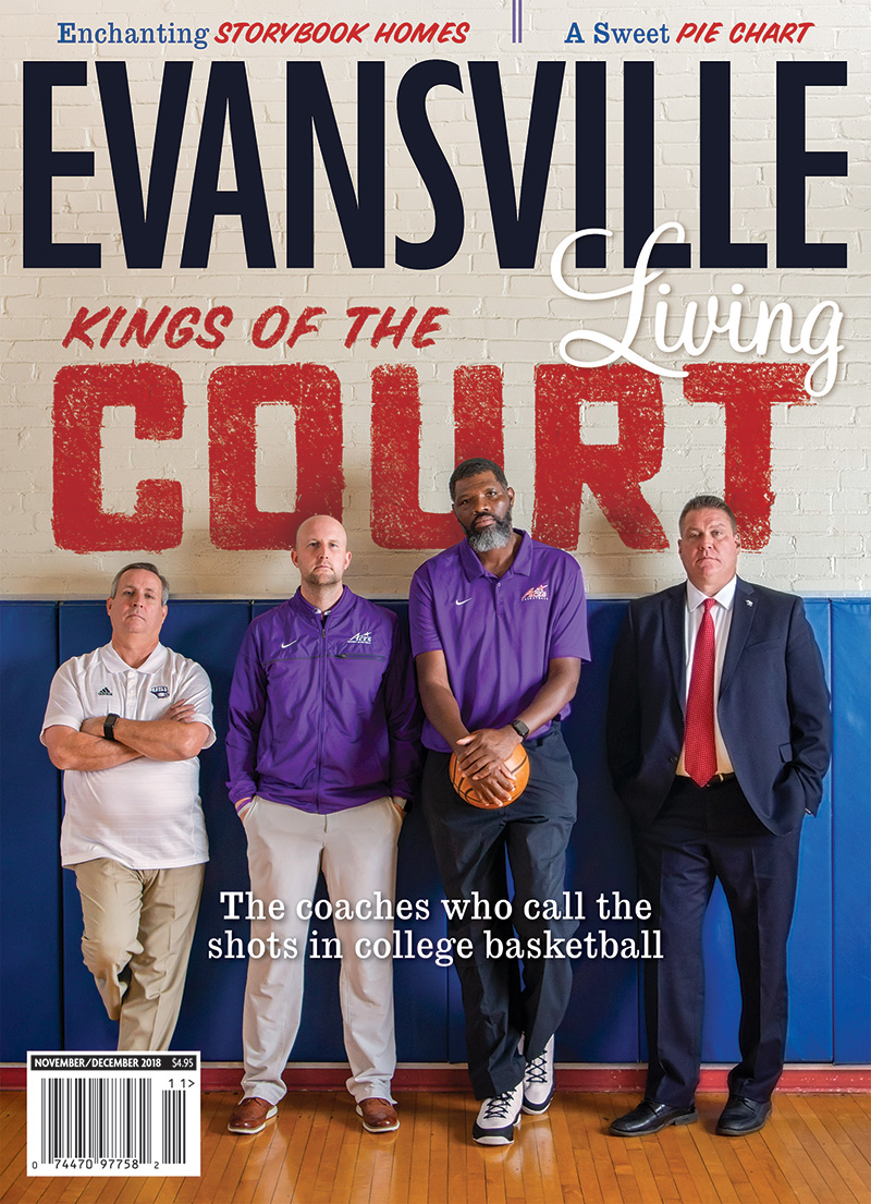It’s an understatement to say things have changed since Evansville Living’s November/December 2018 cover story, “Kings of the Court.” Three of the four coaches profiled are gone, one in a swift, highly publicized fall from grace. University of Evansville men’s basketball continued to struggle under his successor, and some criticized the University of Southern Indiana’s move to NCAA Division I athletics in 2022.