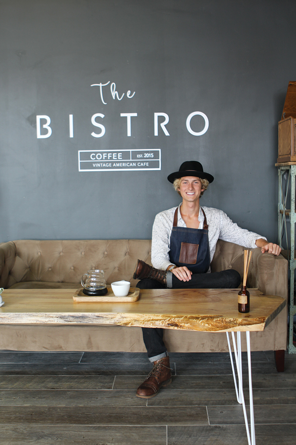 Noah Hayden, the 21-year-old grandson of Roger Hayden and lead vocalist of Christian contemporary band Mission Six, is the owner of Barber Bistro Coffee and the craftsman behind much of the ambiance. He drew the shop’s inspiration from a decade of touring with his band.