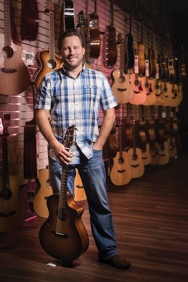 The walls of Brett Mulzer’s office are lined with guitars — exactly what you would expect from the owner and president of Moore Music. An orange guitar hangs on the wall. It was his first Paul Reed Smith he found in Florida when he was 24. Another guitar once belonged to Keith Urban while he was on a tour, but Mulzer is quick to point out that’s not his best story.