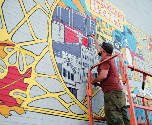 “I hope this is the start of something where we can transform the more drab areas around town and help in the city’s self-esteem,” says Erwin. “People respond to murals, you are out there with them, it helps take an area into something that just isn’t a grey box.”