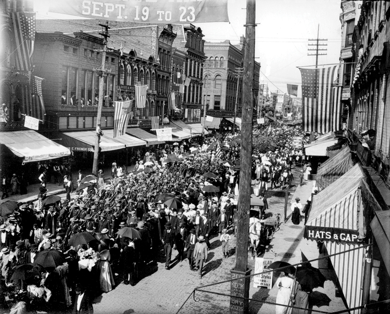 There were also parades down Evansville’s Main Street during times of war. Evansville at Two Hundred: 1812-2012 includes a photo of the Tri-State Fair of 1898 featuring soldiers parading down Main Street on their way to fight in the Spanish-American War.