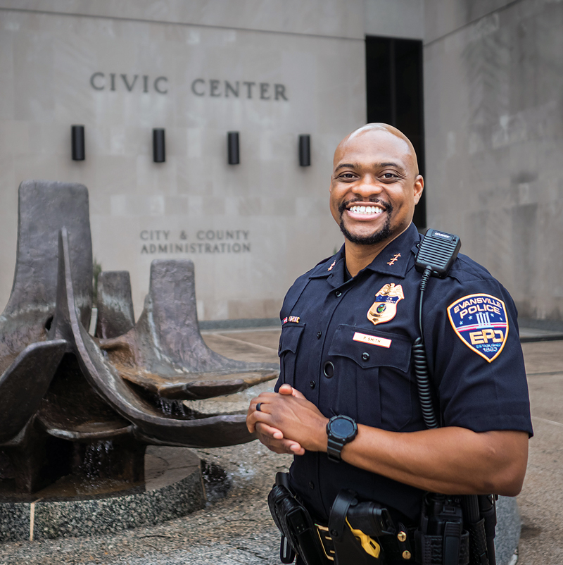 Whether he’s leading an Evansville Police Department press conference or mugging for the camera while escorting children to Disney World, Philip Smith seems at ease with life in a police uniform. But, as discussed in the June/July 2024 issue of Evansville Business, even he was surprised by how wearing a badge was different from his expectations.