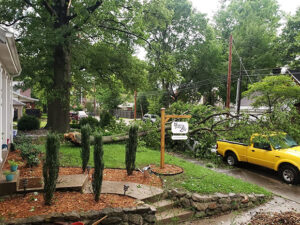 Recognizing the severity of the storms aftermath and experiencing the byproducts of the storm’s heavy winds themselves, Chris and Shannon Owen — whose Cheshire Curiosities microfarm was featured in the September/October issue of Evansville Living — , have lent a helping hand to neighbors struggling to clear large trees blocking roads, driveways, and home entrances.