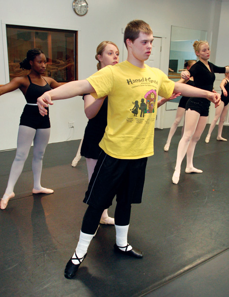 This blend of personality traits makes up the juxtaposition that is Jonathan Uhr — part special-needs student with Down syndrome and part outgoing spirit who can work the crowd, in his mother’s words, “like a politician.” The Harrison High School junior attends special education classes and says, “I love school, but I hate homework.” He is active in his church’s youth group, involved in Boy Scouts, and is a weekend host at Biaggi’s restaurant. Jonathan also is a huge Justin Bieber fan. But the real object of his affection is ballet. He says, “I was born to dance.”